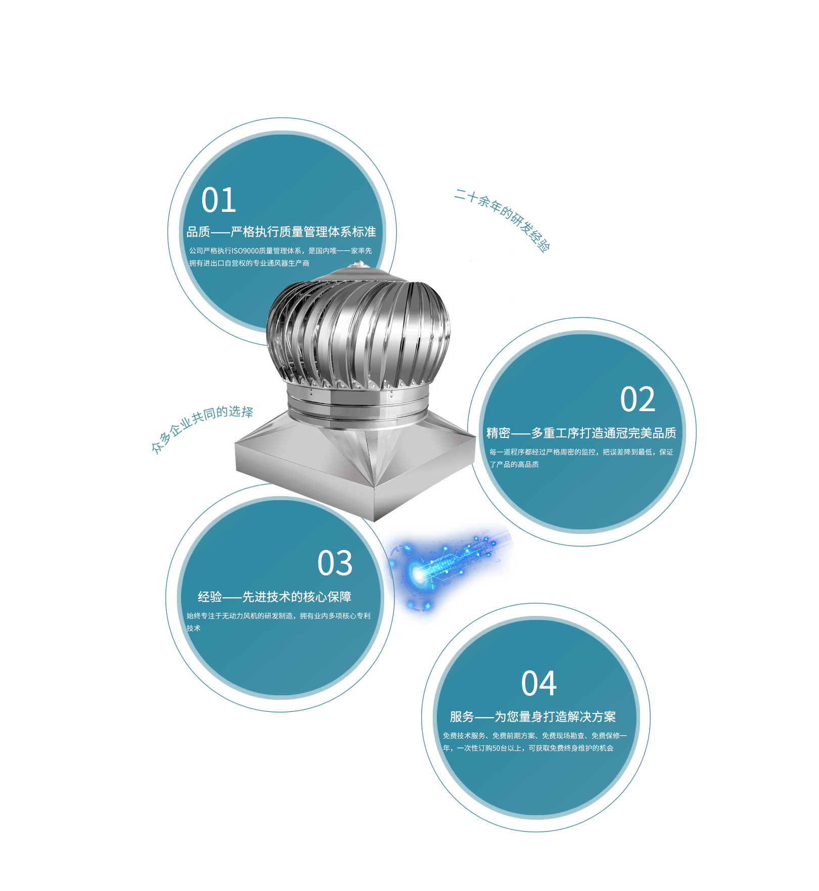 天長市通冠無動力風(fēng)機有限公司,是集研發(fā)、生產(chǎn)、銷售于一體的,專業(yè)無動力風(fēng)機生產(chǎn)廠家。公司坐落于205國道南京與揚州之間,位于省級高新經(jīng)濟(jì)技術(shù)工業(yè)園,交通便利?!巴ü凇庇兄恢Ъ夹g(shù)精湛、服務(wù)非凡的隊伍。所有一線技術(shù)工人技術(shù)熟練、質(zhì)量意識強。公司嚴(yán)格執(zhí)行ISO9000質(zhì)量管理體系,一貫貫徹“以質(zhì)量為生命”、“以信譽為根本”、“以服務(wù)為基礎(chǔ)”的理念···[查看詳細(xì)]
